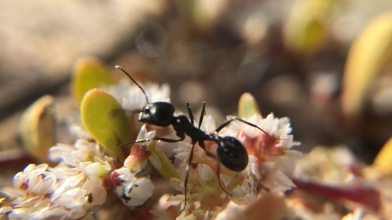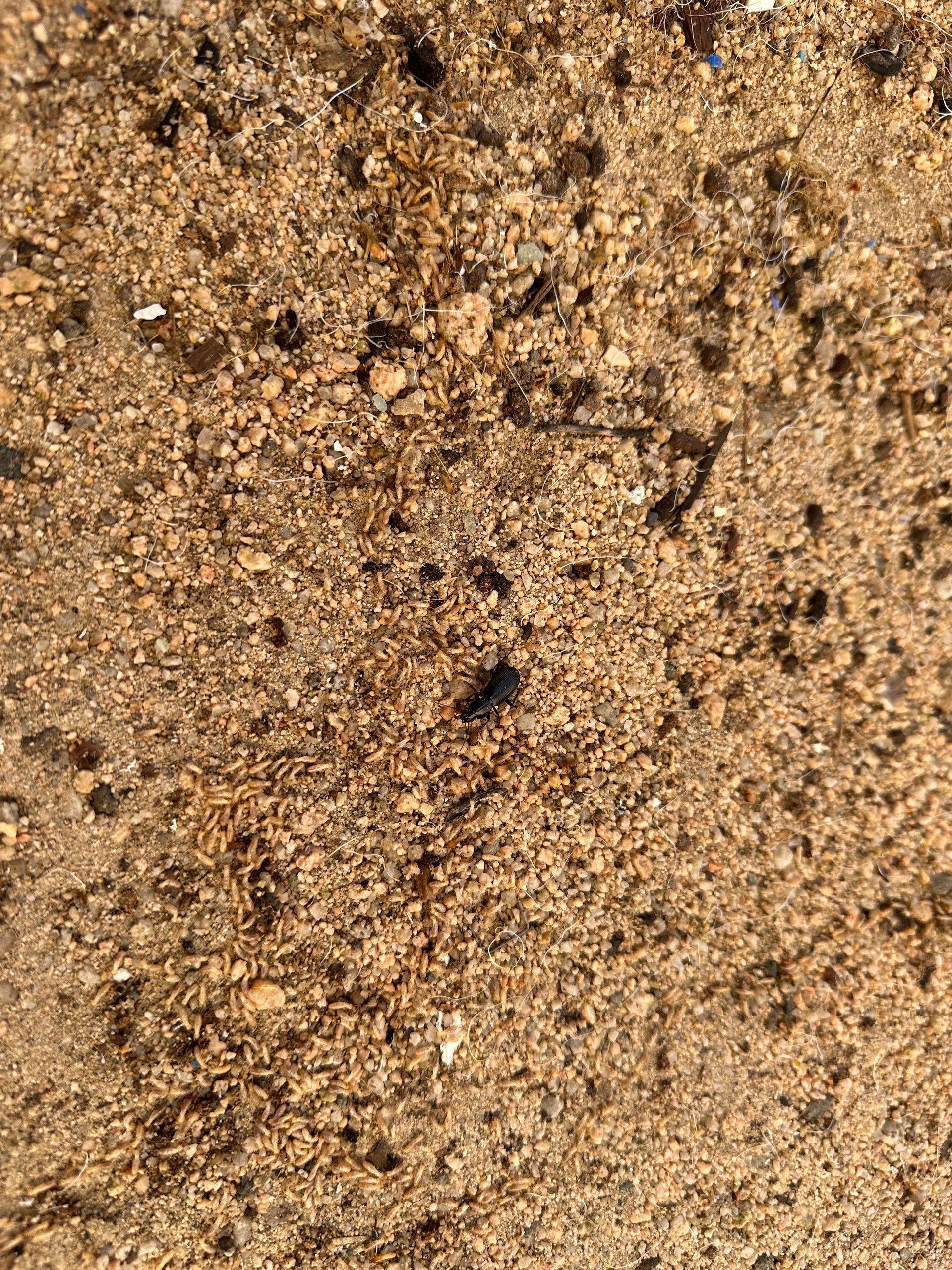 California Seed Harvester Ants (Pogonomyrmex californicus) are found throughout the southwest, including southern California. They are red in color and about 1/4th of an inch in size.